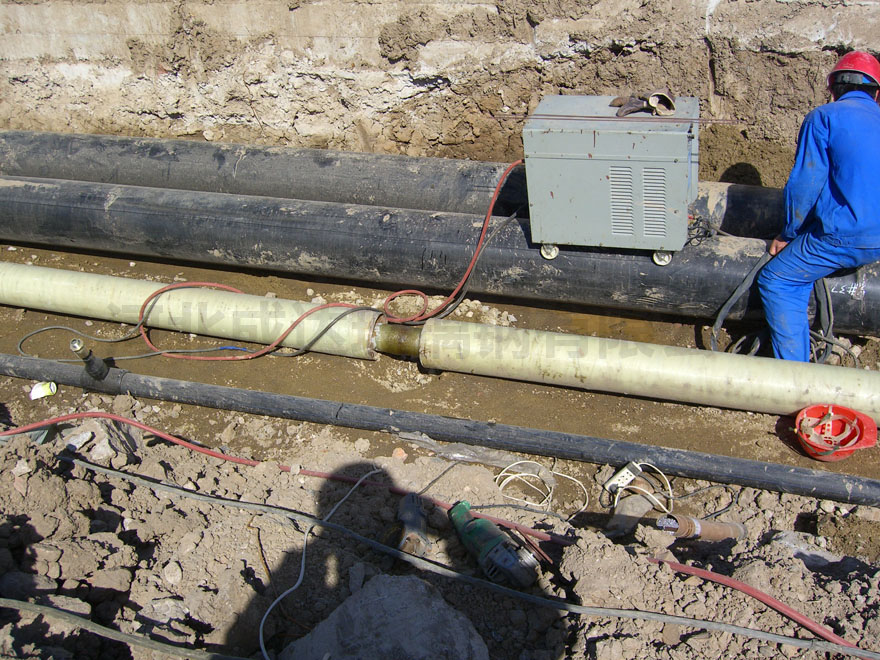 由計(jì)算機(jī)控制,在芯模上按規(guī)定的與纖維纏繞玻璃鋼管相同的工藝制造內(nèi)襯,凝膠后按設(shè)計(jì)好的線型和厚度纏繞結(jié)構(gòu)層,并將石英砂與樹脂混合的砂漿纏在結(jié)構(gòu)層中,最后纏繞外保護(hù)層。